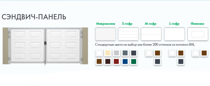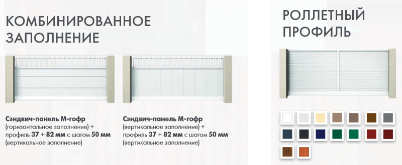 5 типов рисунка сэндвич-панелей, различные комбинации вертикального и горизонтального заполнения экструдированными профилями, огромное множество цветовых решений.