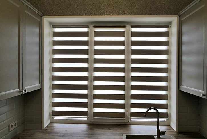 Рулонные жалюзи День-Ночь (другое наименование Зебра) используются в большинство современных интерьеров домов и офисов. Особенно хорошо эти шторы выглядят в помещениях в стиле хай-тек, лофт, поп-арт, минимализм, а также японском и скандинавском стилях. Использовать рулонные День/Ночь можно не только в качестве защиты от солнца из окон, но и для дверей, арок и других проемов.